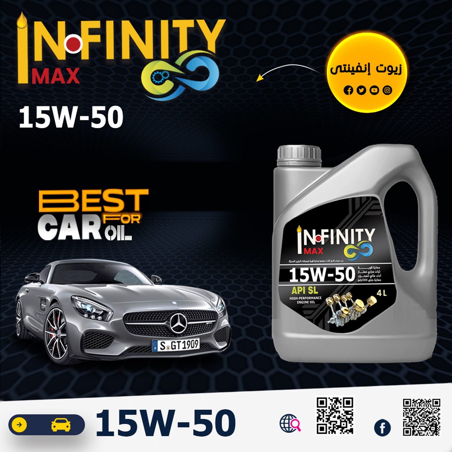 زيوت السيارات من إنفينيتي ماكس مصممة لتوفير أقصى قدر من الحماية والأداء لسيارتك. تتميز بتركيبة متطورة تلبي أعلى معايير الجودة العالمية، مما يضمن لك قيادة سلسة, اختر إنفينيتي ماكس، اختر القوة.