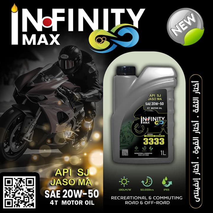 زيوت السيارات من إنفينيتي ماكس مصممة لتوفير أقصى قدر من الحماية والأداء لسيارتك. تتميز بتركيبة متطورة تلبي أعلى معايير الجودة العالمية، مما يضمن لك قيادة سلسة, اختر إنفينيتي ماكس، اختر القوة.